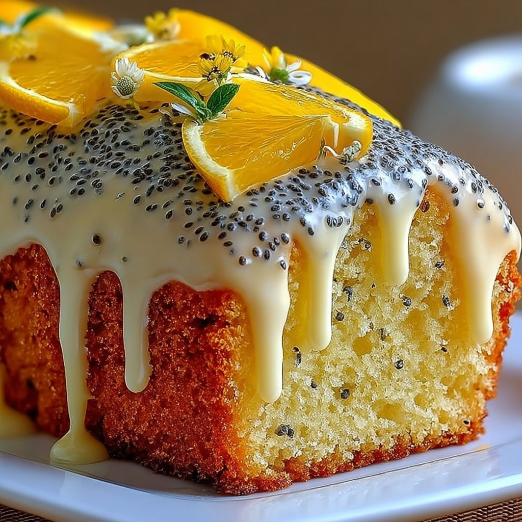 Une fois cuit, le cake est retiré du four et laissé à refroidir légèrement avant démoulage. Ce repos permet à la structure interne de se stabiliser tout en conservant le moelleux. La croûte légèrement dorée reste fine et délicate, tandis que la mie est tendre, aérienne et parfumée. La texture des graines de pavot ajoute une légère sensation croquante à chaque bouchée.