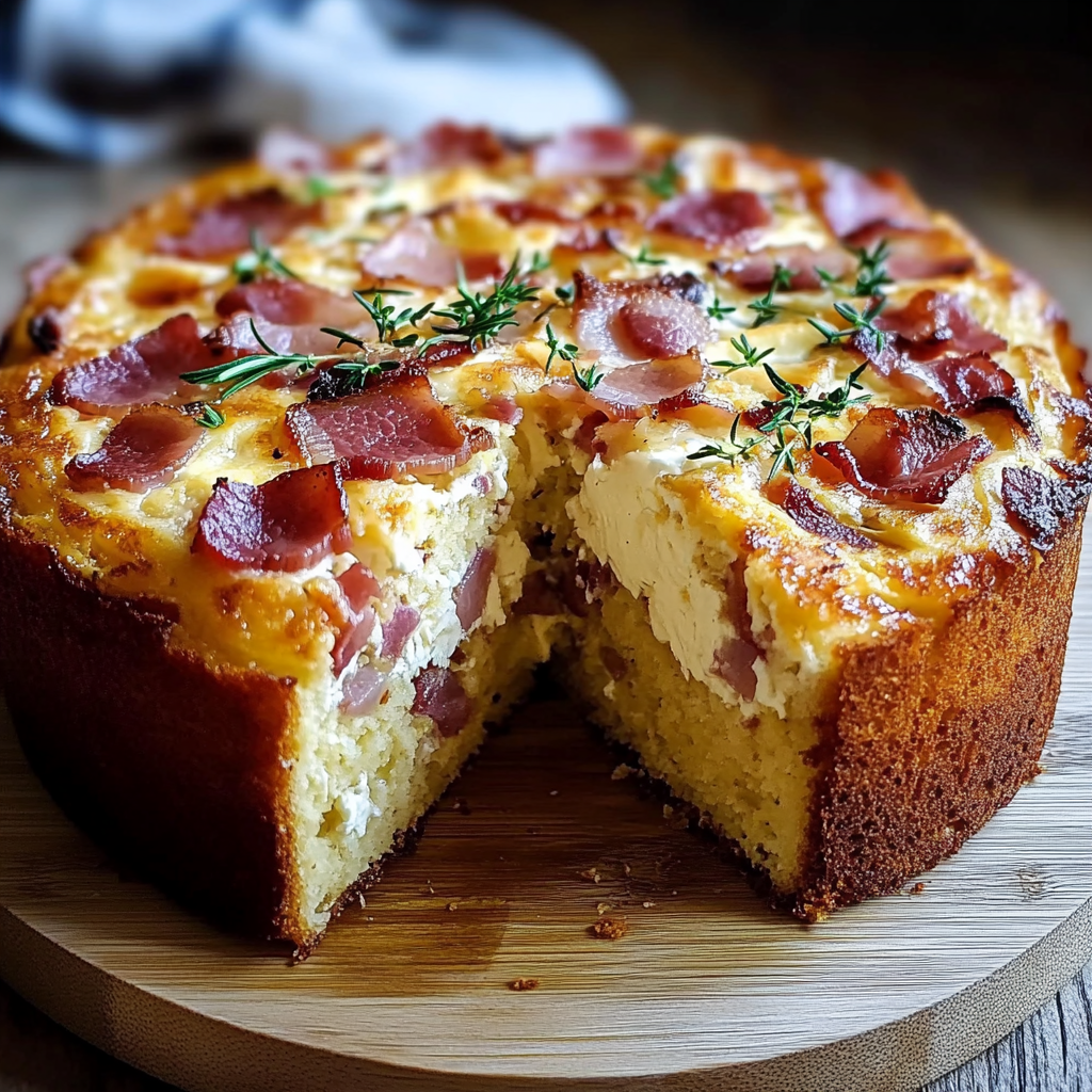 Description courte : Cake moelleux alliant bacon savoureux et chèvre crémeux, idéal pour l’apéritif ou un repas léger.
