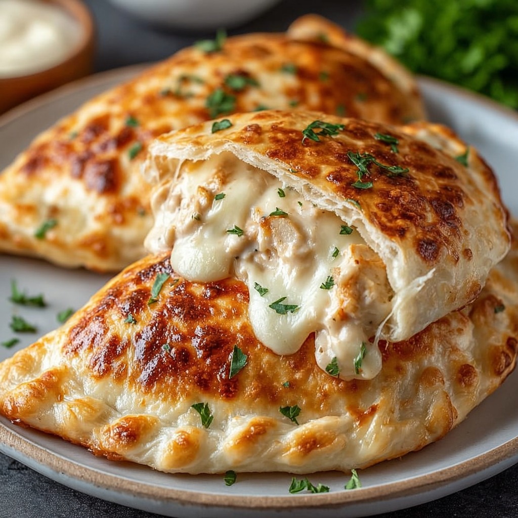 La préparation de ces calzones montre l’équilibre entre technique, saveurs et textures. La pâte dorée, le poulet croustillant, le fromage fondant et la sauce crémeuse créent un plat à la fois gourmand, convivial et élégant, parfaitement adapté à un repas familial ou festif.