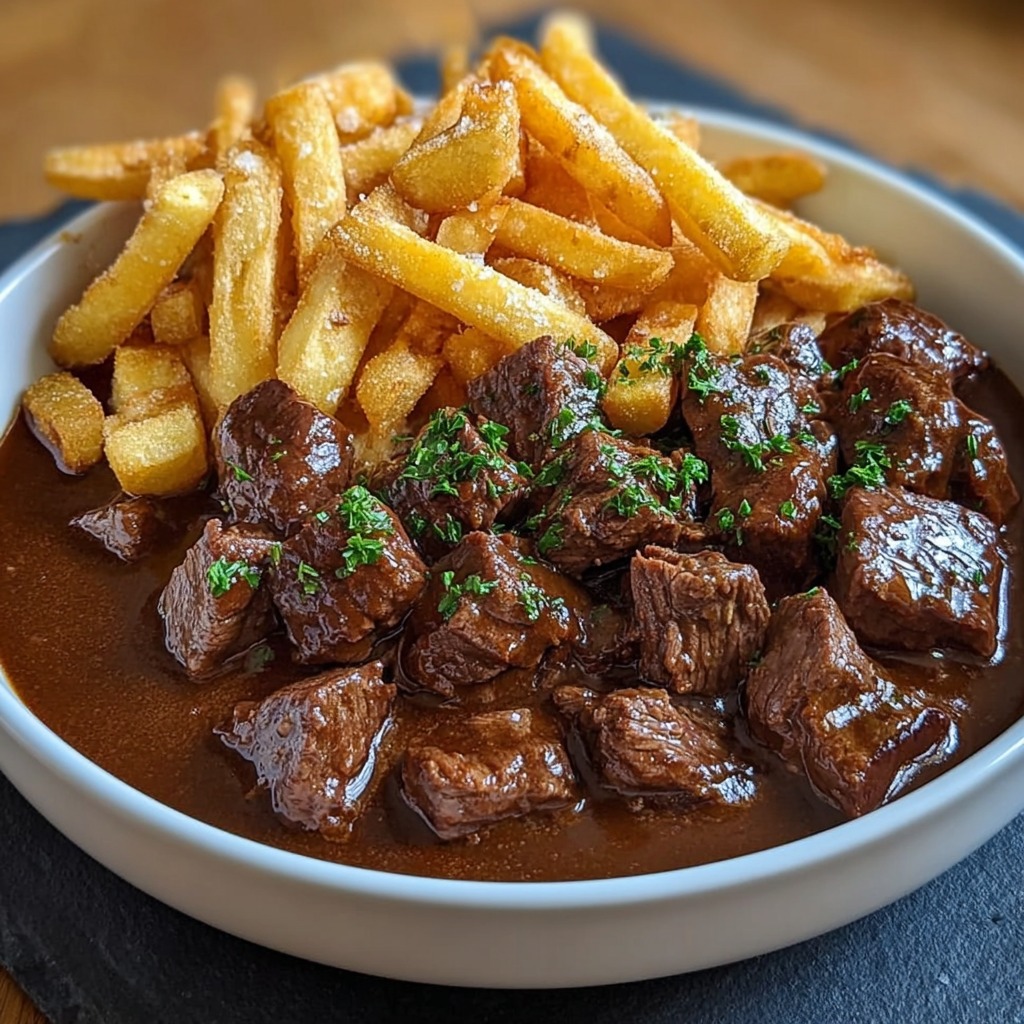 La carbonade flamande avec frites est un grand classique de la cuisine du nord. Elle associe le moelleux de la viande mijotée, la richesse de la sauce à base de bière et la saveur douce de la cassonade. La réalisation de ce plat repose sur un temps de cuisson long permettant aux ingrédients de développer pleinement leurs arômes. Les frites faites maison apportent une texture croustillante qui contraste agréablement avec le caractère fondant de la carbonade. Cette recette offre un équilibre de saveurs abouti et constitue un exemple typique de la cuisine régionale chaleureuse et généreuse. Elle peut être adaptée selon les