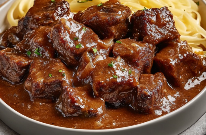 • Bière : Utilisez une bière brune de qualité pour obtenir la meilleure saveur possible. Si vous n’aimez pas la bière, vous pouvez remplacer une partie par du bouillon de bœuf, mais cela changera légèrement le goût de la sauce.