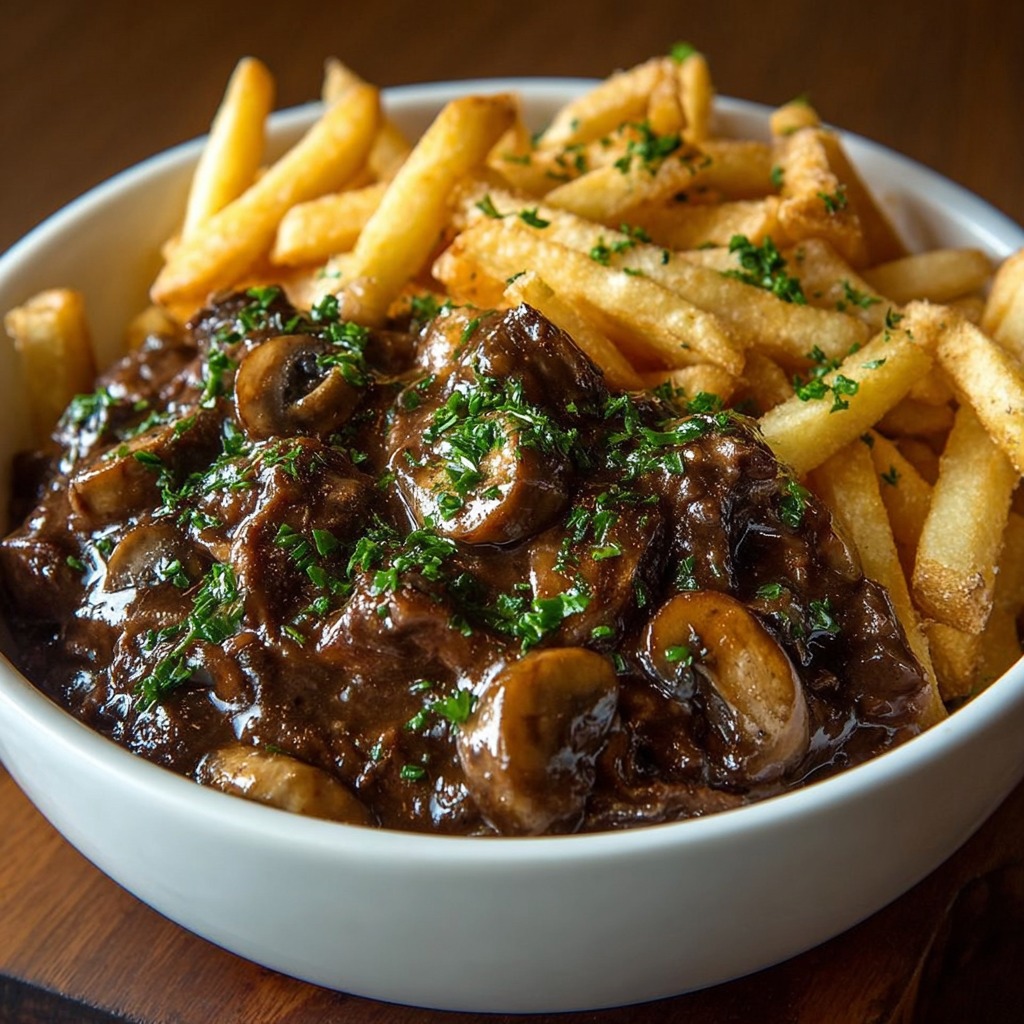 La carbonnade est cuite à feu doux pendant plusieurs heures. Ce mijotage lent permet à la viande de devenir fondante et aux saveurs de se concentrer. La sauce s’épaissit naturellement, enrobant la viande et les champignons d’une texture onctueuse et brillante.