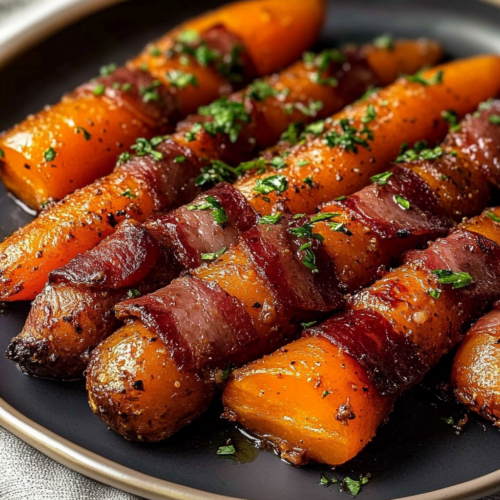 Les carottes enrobées de bacon de bœuf et nappées de glaçage à l’érable sont maintenant prêtes à être servies ! Disposez-les sur une assiette chaude et servez-les immédiatement pour profiter de leur texture croustillante et de leur saveur délicieuse. Ces carottes peuvent être servies en accompagnement de plats de viande, de poisson ou même en tant que plat principal pour un repas léger mais savoureux.