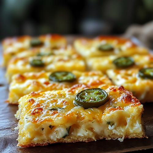 Les Carrés au Fromage et Jalapeño sont une excellente idée pour un snack savoureux, un apéritif entre amis ou même un plat d’accompagnement pour un repas convivial. Cette recette combine deux éléments incontournables : le fromage fondant et la touche épicée des jalapeños. L’association du cheddar fort et du Monterey Jack, avec la douceur des œufs et du beurre, donne une texture fondante à chaque bouchée. Si vous cherchez à ajouter un peu de piquant à vos repas, ces carrés sont la réponse idéale.