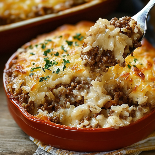 La Casserole de Bœuf Haché et Riz à l’Oignon Français est une recette simple et savoureuse qui combine des ingrédients accessibles pour créer un repas familial réconfortant. Ce plat unique, facile à préparer, offre un mélange parfait de saveurs grâce à la combinaison de la soupe à l’oignon française et du consommé de bœuf, avec une texture crémeuse grâce au riz tendre et au bœuf savoureux. Suivez cette recette détaillée pour un dîner qui plaira à coup sûr.