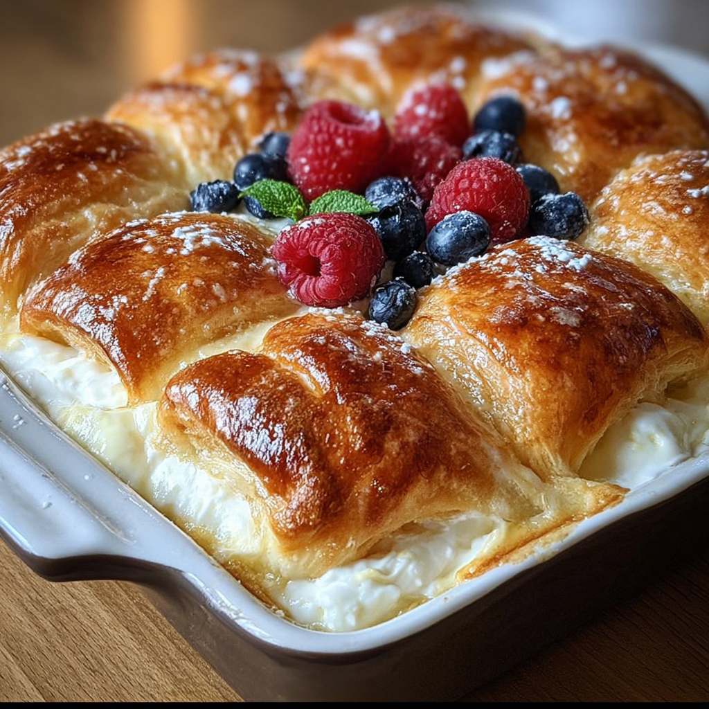 La casserole de croissants au cheesecake est née de la combinaison entre la pâtisserie américaine classique (cheesecake) et l’amour des viennoiseries du petit-déjeuner. Ce dessert évoque le confort des plats faits maison tout en offrant un côté chic et sucré idéal pour les occasions spéciales. Il a gagné en popularité dans les brunchs américains où l’on cherche à épater sans trop d’effort.