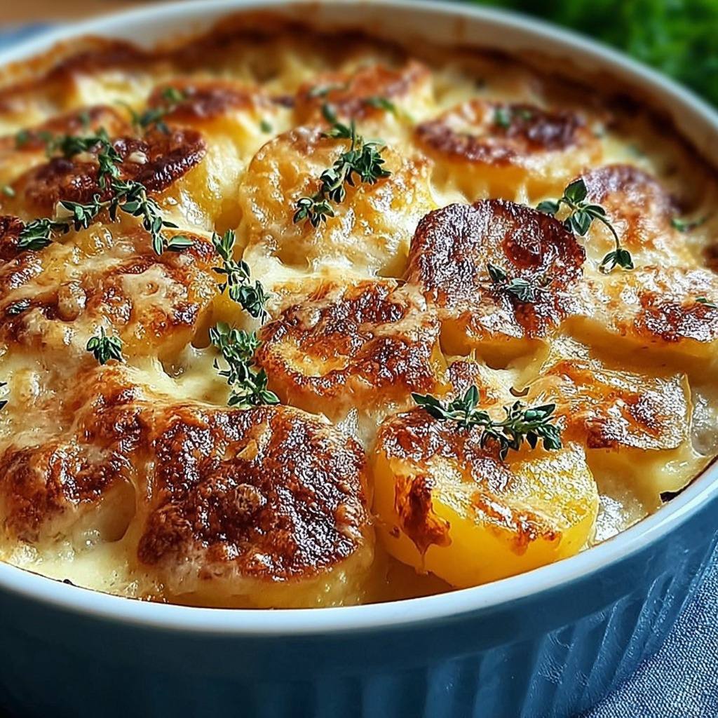 Enfourner pendant 25 à 30 minutes, jusqu’à ce que le dessus soit bien doré et que les pommes de terre soient entièrement cuites. Vérifier la cuisson en piquant avec la pointe d’un couteau : elle doit s’enfoncer facilement dans les rondelles. Laisser reposer cinq à dix minutes avant de servir pour que la casserole se stabilise et que les couches se tiennent mieux.