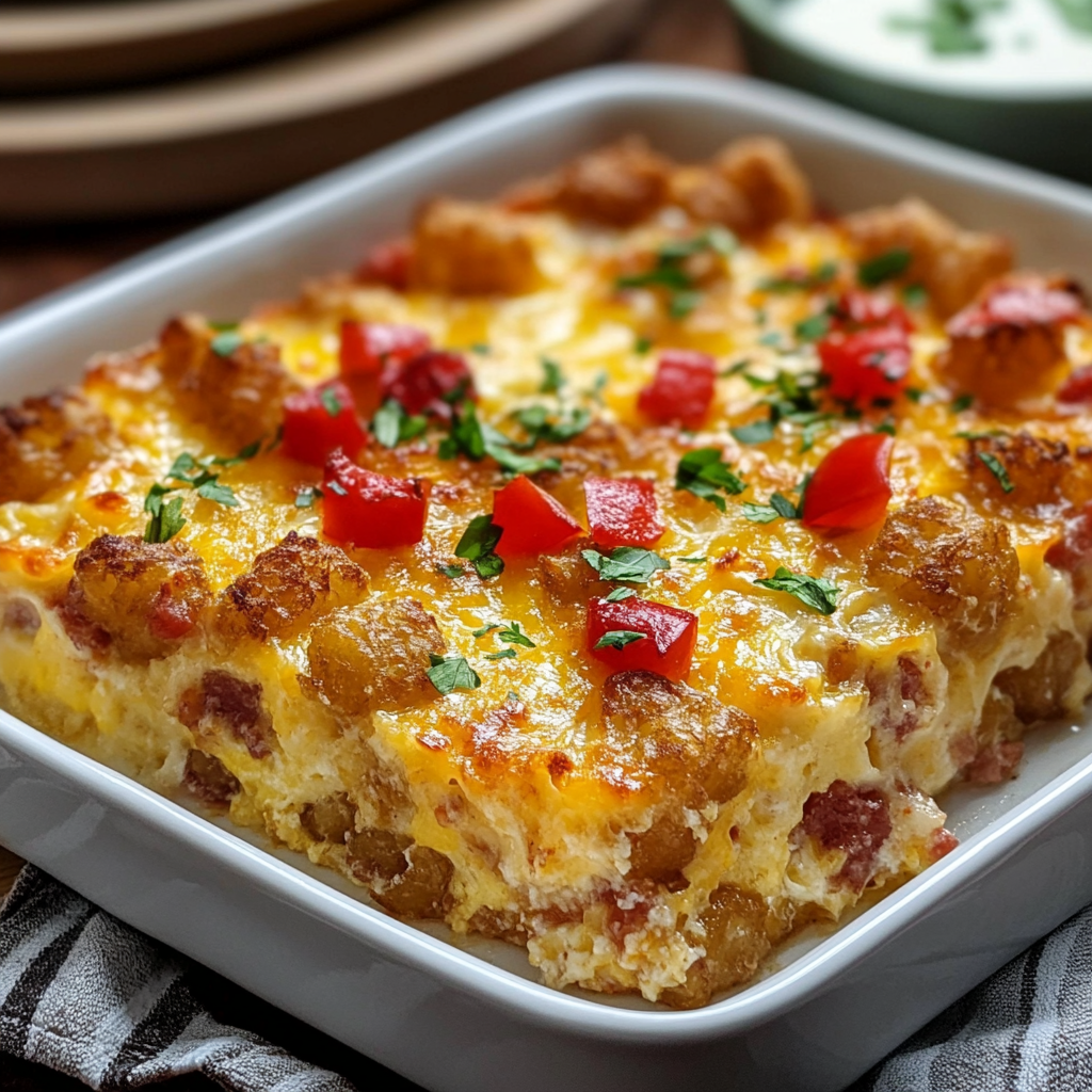 La Casserole Petit-Déjeuner Tater Tot est un plat familial, réconfortant et simple à préparer. Il combine des ingrédients classiques du petit-déjeuner dans une seule casserole facile à cuire. C’est une recette idéale pour les grands brunchs ou les matins où vous souhaitez commencer la journée avec un repas copieux et savoureux. Grâce à sa versatilité, vous pouvez l’adapter à vos goûts personnels, en ajoutant des épices ou des légumes supplémentaires. Et n’oubliez pas que c’est un excellent plat à préparer à l’avance pour gagner du temps!