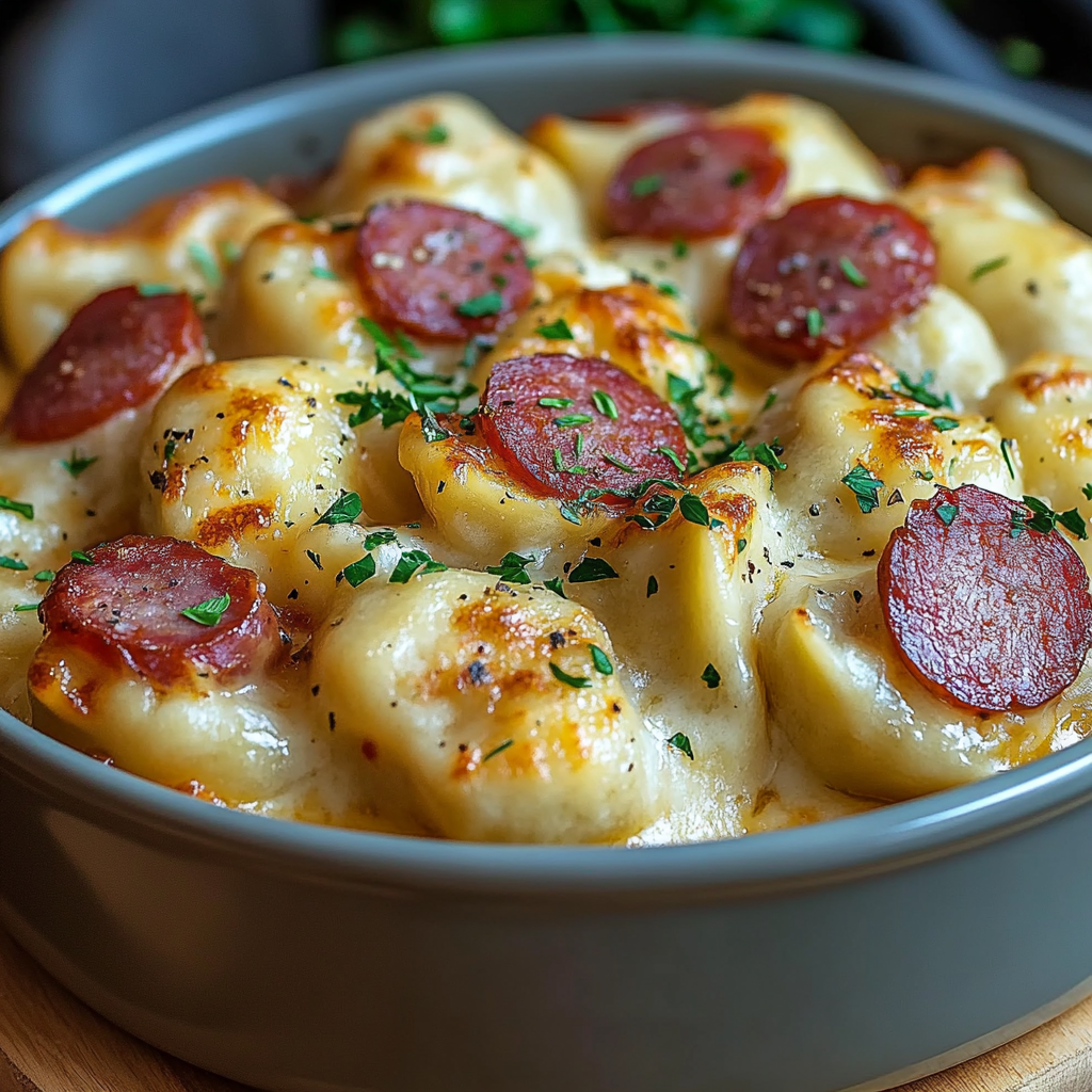Quand on parle de plats réconfortants, généreux et simples à préparer, la casserole de pierogis à la kielbasa se place facilement parmi les favoris. D’inspiration polonaise, cette recette marie les savoureuses boulettes de pâte farcies (pierogis) avec une kielbasa fumée (saucisse polonaise), du fromage fondant, des oignons caramélisés, et une sauce riche à base de crème et de bouillon. Le tout mijoté lentement pour des saveurs bien développées et une texture ultra fondante.