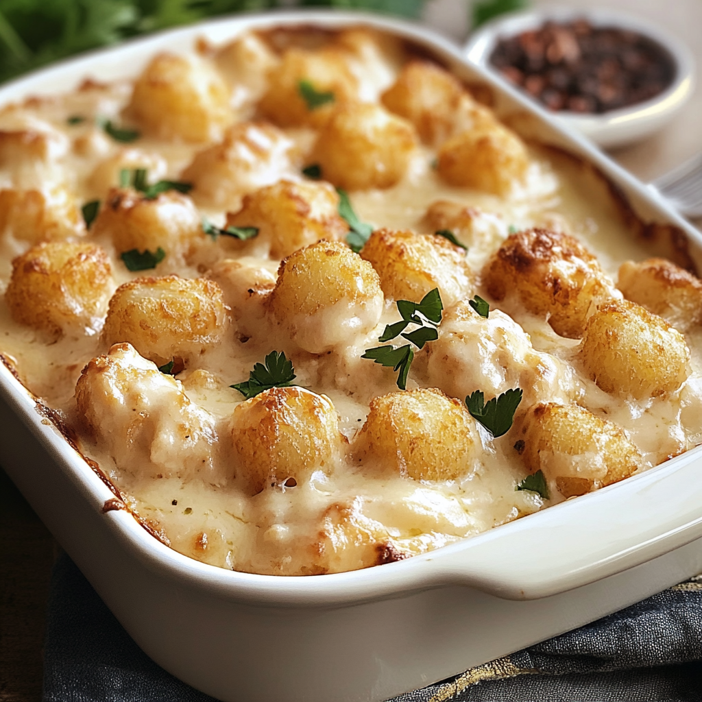 Casserole Poulet Alfredo et Tater Tots