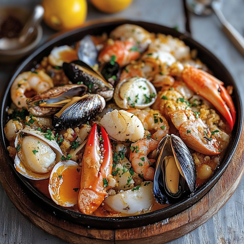 - Dégustation : Servez chaud, accompagné de quartiers de citron pour arroser les fruits de mer.