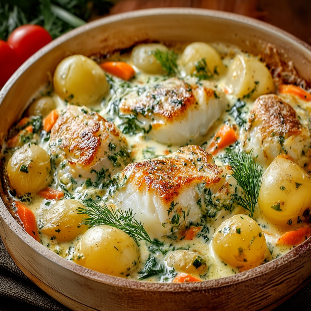 La cassolette de poisson à la crème et aux légumes est l’un de ces plats qui évoquent immédiatement le confort, la douceur et la générosité de la cuisine familiale. Elle rassemble dans un même plat tout ce que l’on recherche lors d’un repas réconfortant : des légumes fondants, un poisson délicat, une sauce onctueuse et un parfum subtil qui embaume la cuisine dès la sortie du four.