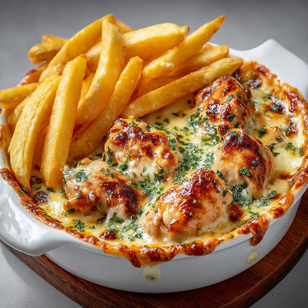 Un plat généreux, crémeux et profondément réconfortant, les cassolettes de poulet au maroilles sont une véritable invitation à la gourmandise. Originaire du nord de la France, cette recette associe la tendreté du poulet à la puissance aromatique du maroilles, un fromage au caractère bien affirmé. Accompagnée de frites maison croustillantes, elle devient un repas complet, chaleureux et irrésistible.