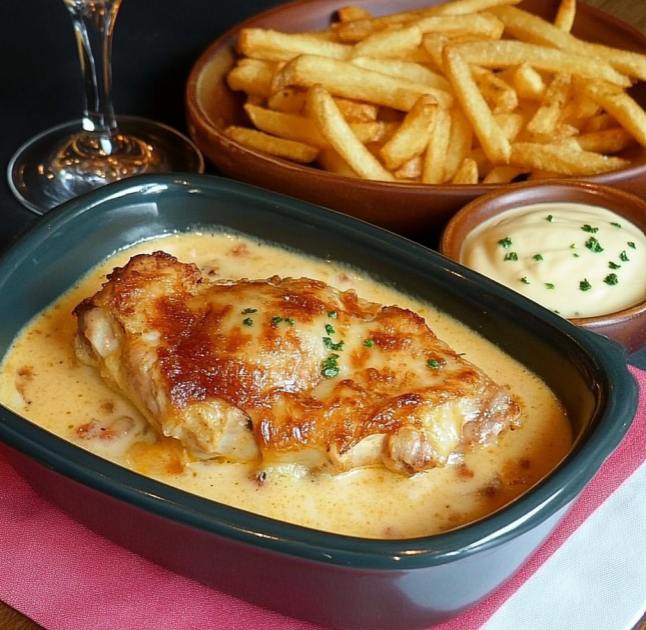 Cassolettes de Poulet au Maroilles et Frites Maison