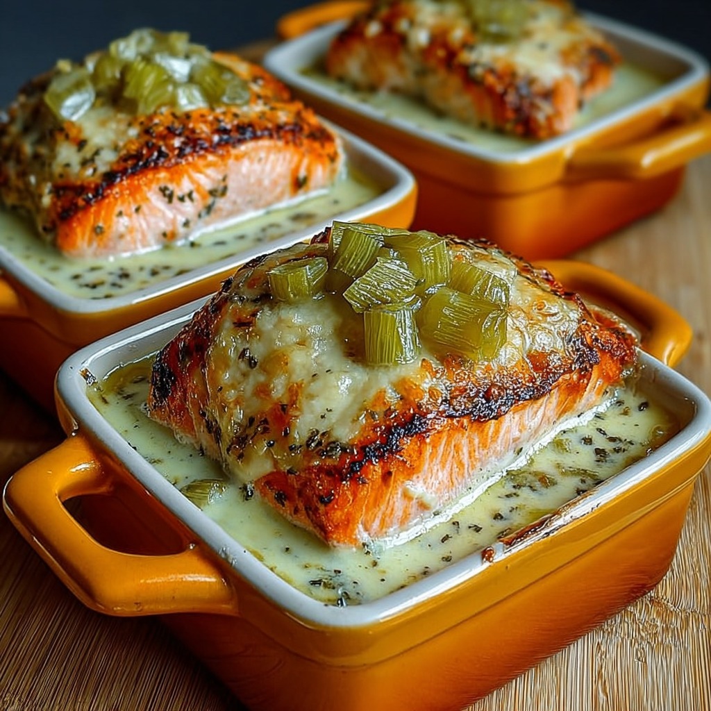 Cassolettes de Saumon à la Crème de Poireaux