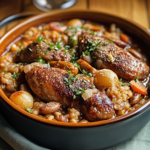 Cassoulet Gourmand au Confit de Canard et Saucisses Épicées