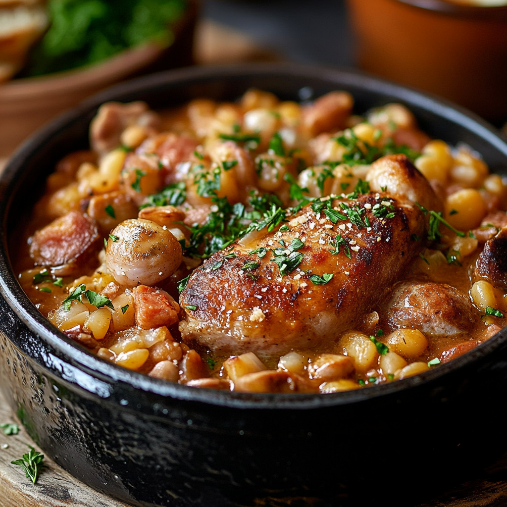 Servez ce cassoulet revisité avec une salade verte croquante pour équilibrer ce plat riche et gourmand !