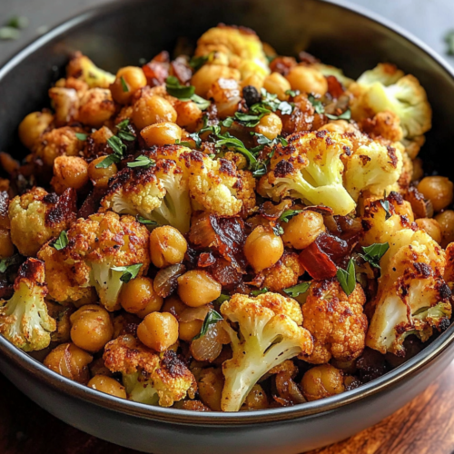 Le chou-fleur et les pois chiches épicés sont non seulement un excellent choix pour un repas végétarien ou végétalien, mais aussi une option de plat principal ou d’accompagnement nutritif et plein de saveurs. Ce plat est parfait pour ceux qui veulent manger plus de légumes tout en se régalant avec des épices chaleureuses et une texture croustillante. Facile à préparer et parfait pour toute la famille, il sera sûrement un succès à chaque fois.