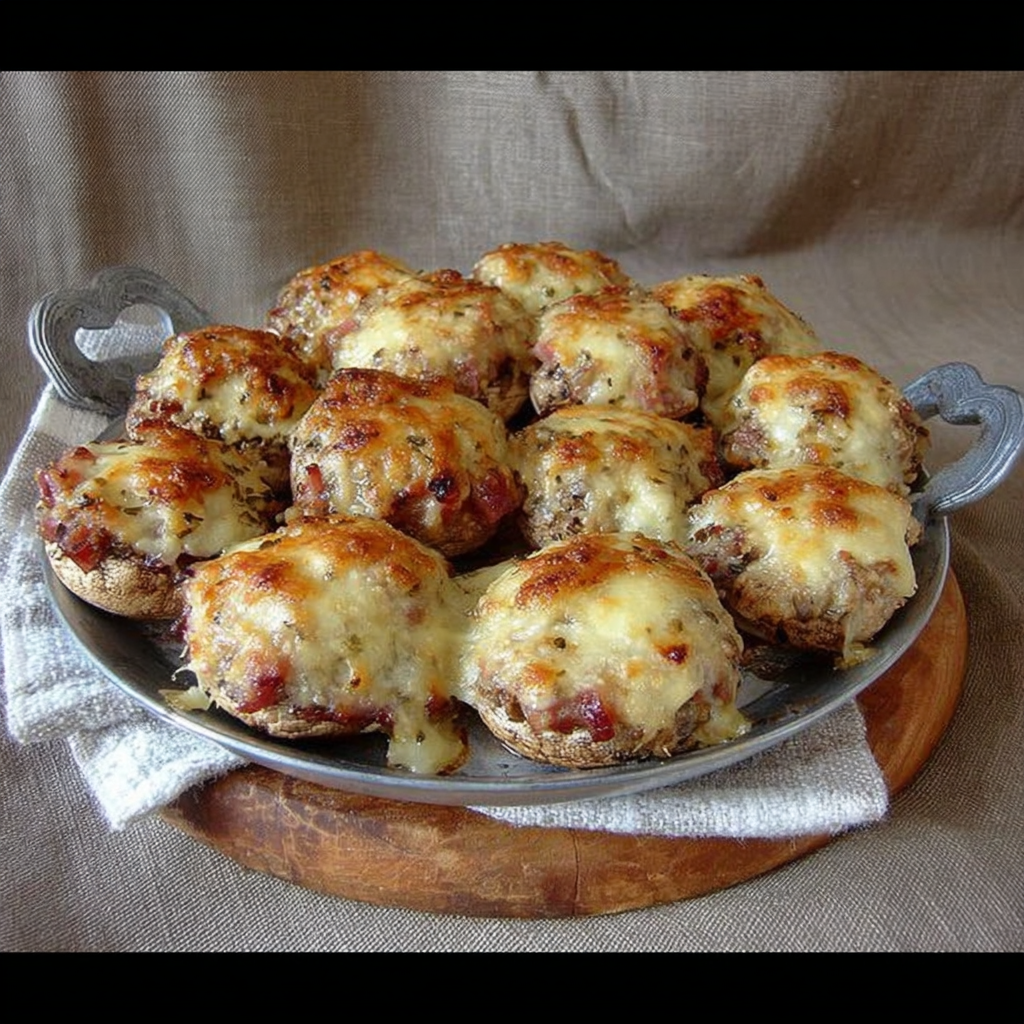 Les champignons farcis au jambon et au comté font partie de ces recettes qui allient simplicité et gourmandise. Ils se préparent en quelques minutes, ne nécessitent que peu d’ingrédients, et offrent un résultat digne d’un petit plat de bistro. Parfaits en entrée chaude, en apéritif dînatoire ou même en plat léger avec une salade, ils séduisent par leur texture moelleuse, leur cœur fondant et leur parfum irrésistible.