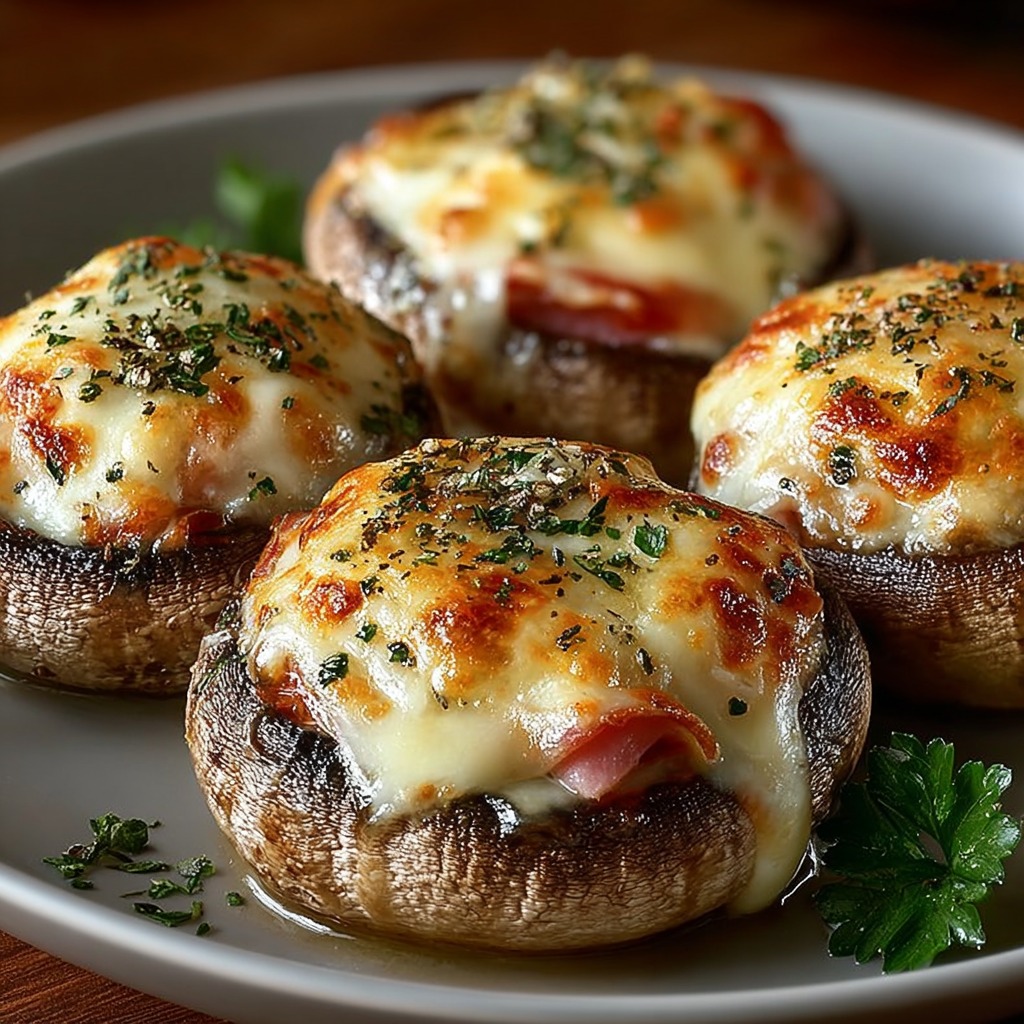 Champignons farcis jambon-fromage gratiné