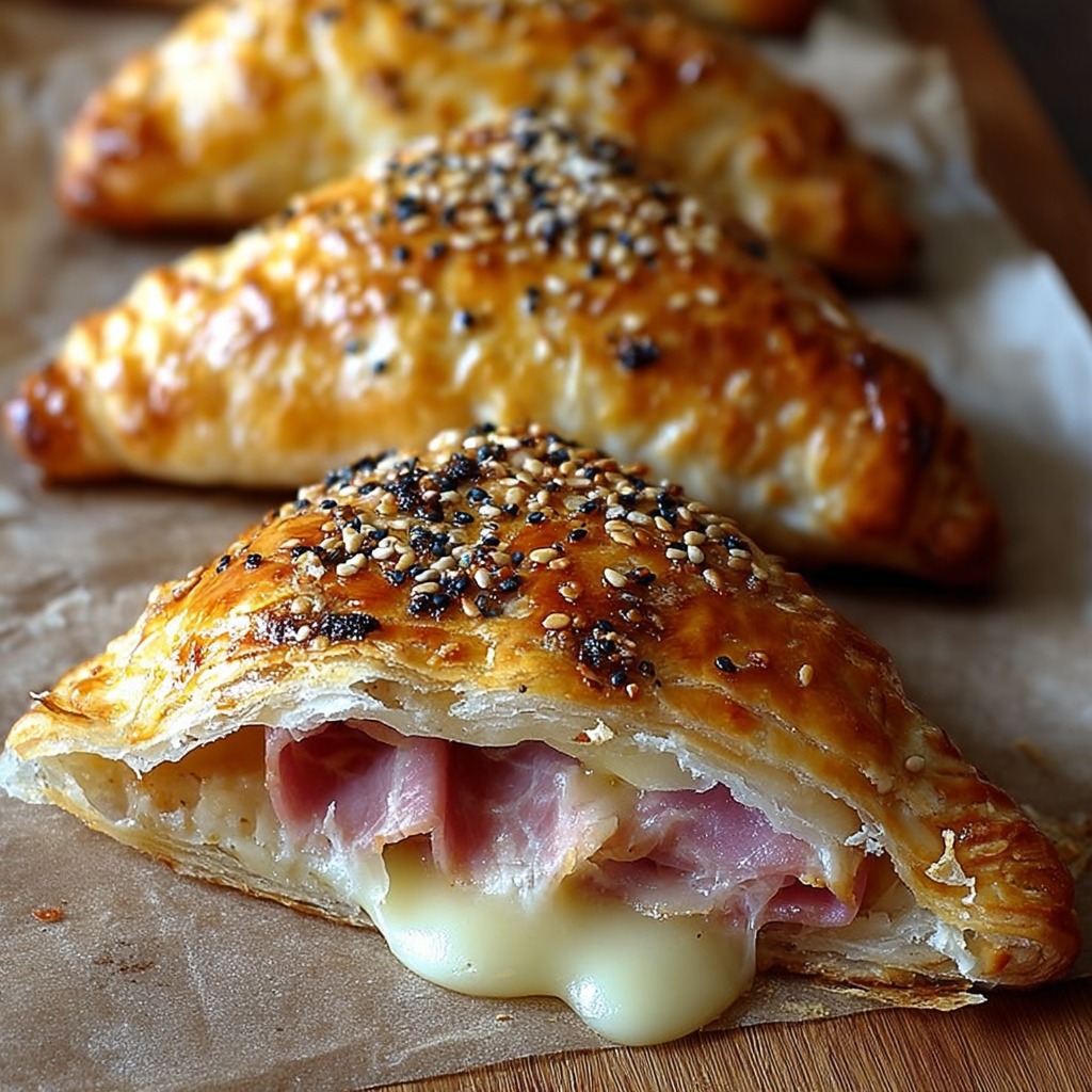 Ces chaussons au jambon et gruyère coupés en deux sont donc une recette classique mais toujours appréciée, facile à préparer et adaptable à toutes les situations. Ils incarnent la simplicité de la cuisine familiale française, où quelques ingrédients bien choisis permettent de réaliser un plat gourmand et réconfortant. Leur succès repose sur l’équilibre entre la pâte dorée, le jambon savoureux et le fromage fondant, une association intemporelle qui plaît à tous les