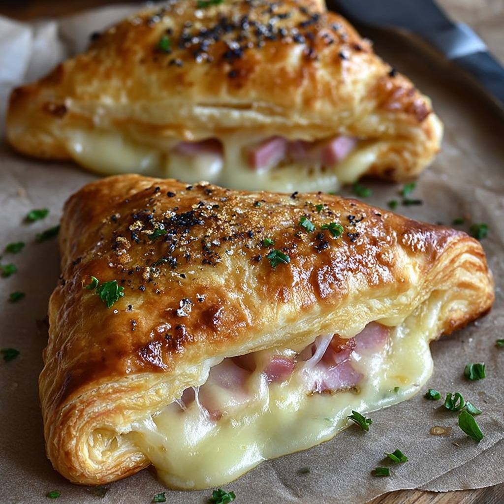Utiliser une pâte feuilletée bien froide pour obtenir un feuilletage croustillant. Ne pas trop remplir les chaussons pour éviter que la garniture ne s’échappe à la cuisson. Le jambon doit être coupé en petits morceaux pour une répartition homogène avec le fromage.