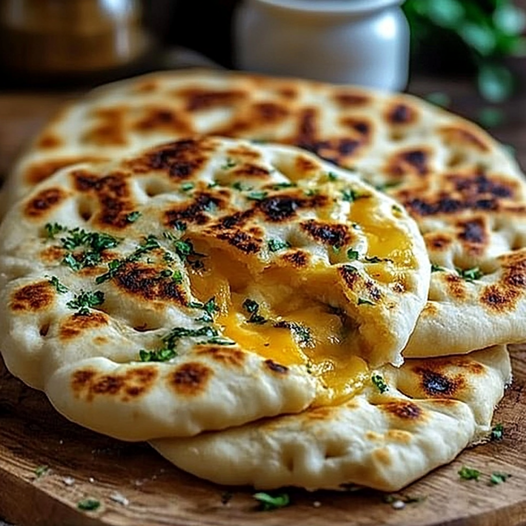 Ces cheese naans maison sont parfaits pour un repas en famille ou entre amis. Leur texture moelleuse et leur cœur fondant au fromage raviront les petits et les grands.