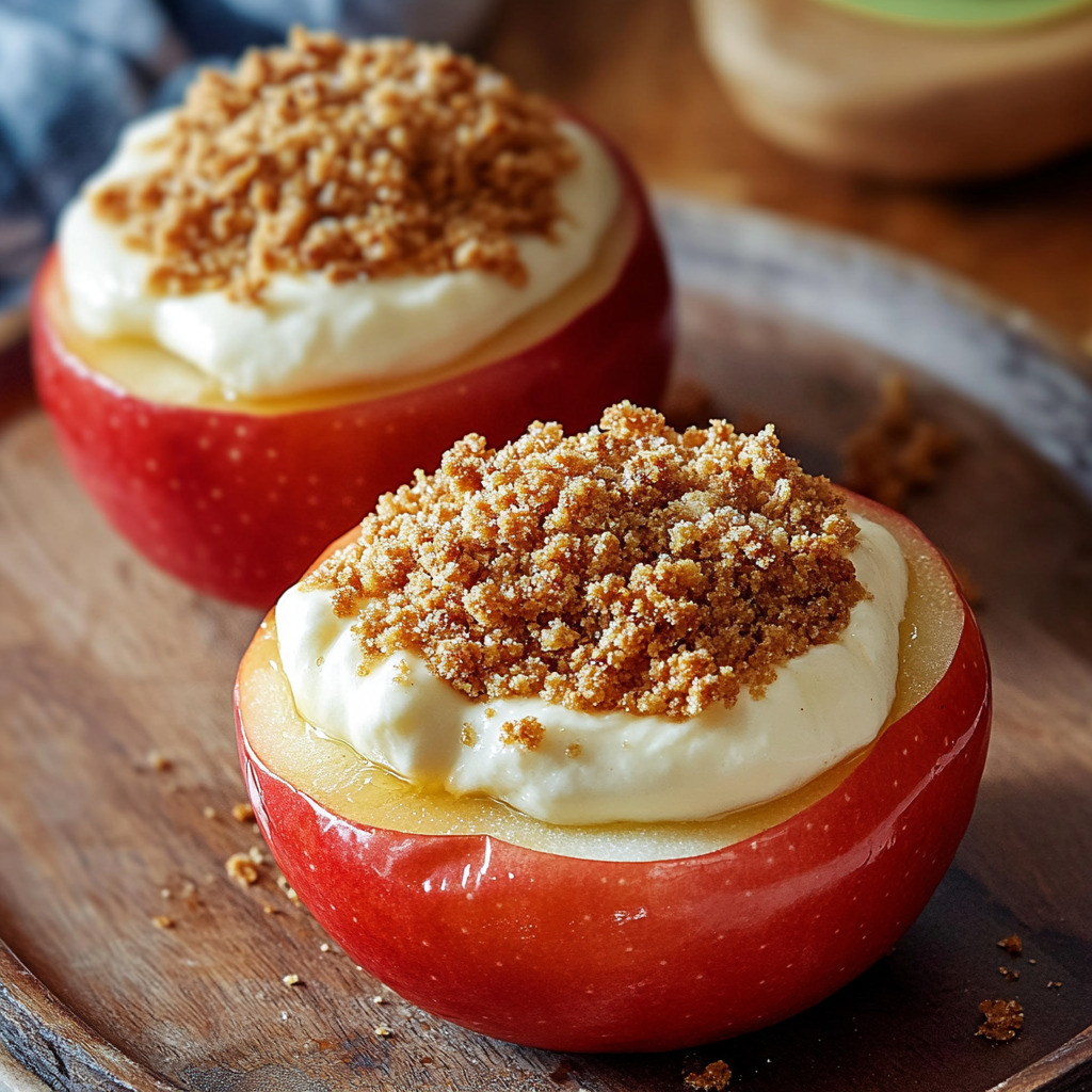 Un dessert délicieux combinant pommes juteuses et cheesecake crémeux avec une touche croustillante.