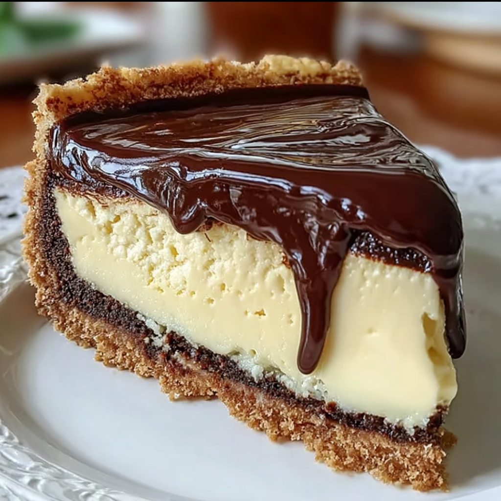 Le Cheesecake Boston à la crème et au chocolat est un dessert spectaculaire qui marie deux grands classiques de la pâtisserie américaine : le Boston Cream Pie et le cheesecake. Ce gâteau se compose d’une base croustillante aux biscuits, d’un cheesecake ultra crémeux, d’une généreuse couche de crème pâtissière à la vanille et d’un nappage brillant au chocolat. Chaque bouchée est douce, fondante et intensément gourmande.