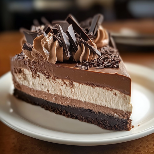 Régalez-vous avec cette cheesecake triple chocolat, un dessert crémeux et riche qui satisfera toutes vos envies chocolatées. Cette recette vous offre trois couches de chocolat différentes, créant une expérience de dessert riche, décadente et absolument irrésistible. Ce cheesecake est parfait pour toute occasion spéciale, que ce soit un anniversaire, un dîner en famille ou simplement pour se faire plaisir à la fin d’une journée.