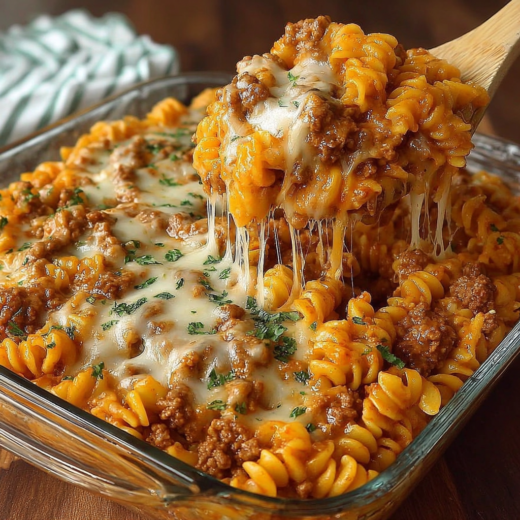 La Cheesy Hamburger Casserole Bake est un plat généreux, facile à personnaliser et absolument délicieux. C’est :