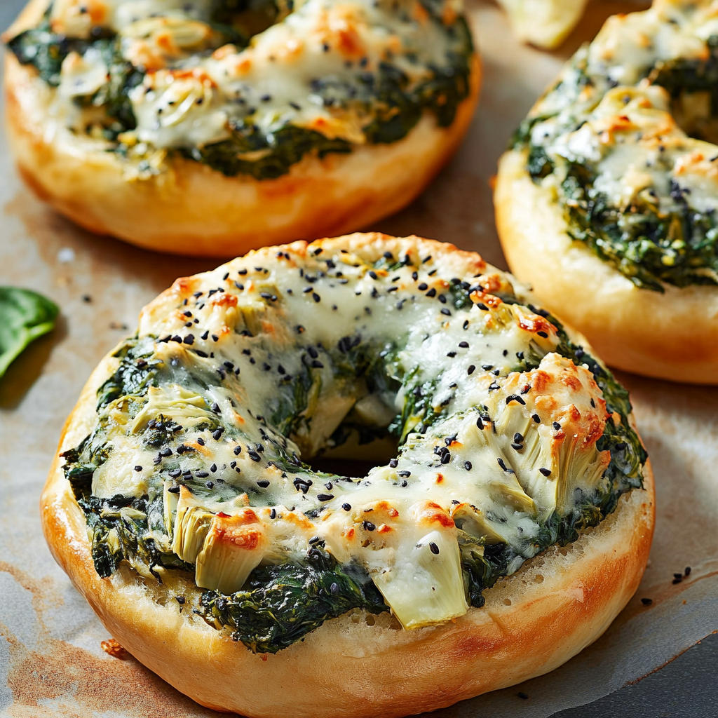 Looking for a quick and delicious snack or appetizer that’s both savory and cheesy? These Cheesy Spinach-Artichoke Bagels are just the thing! With a creamy spinach-artichoke mixture spread over bagels and topped with melted mozzarella, they’re a hit for any occasion. Whether you’re hosting a party or just want a tasty treat, these bagels are easy to make and even easier to enjoy.
