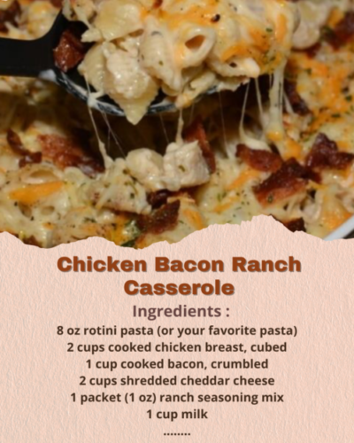 The Chicken Bacon Ranch Casserole is a testament to the joy of comfort food. It’s a dish that combines simple ingredients into something that’s more than the sum of its parts. Whether you’re serving it up for a family dinner, bringing it to a potluck, or simply enjoying it as a delicious indulgence, this casserole is sure to be a hit. Its combination of creamy, cheesy, and savory flavors, all wrapped up in a warm, baked casserole, makes it a perfect choice for any comfort food enthusiast.