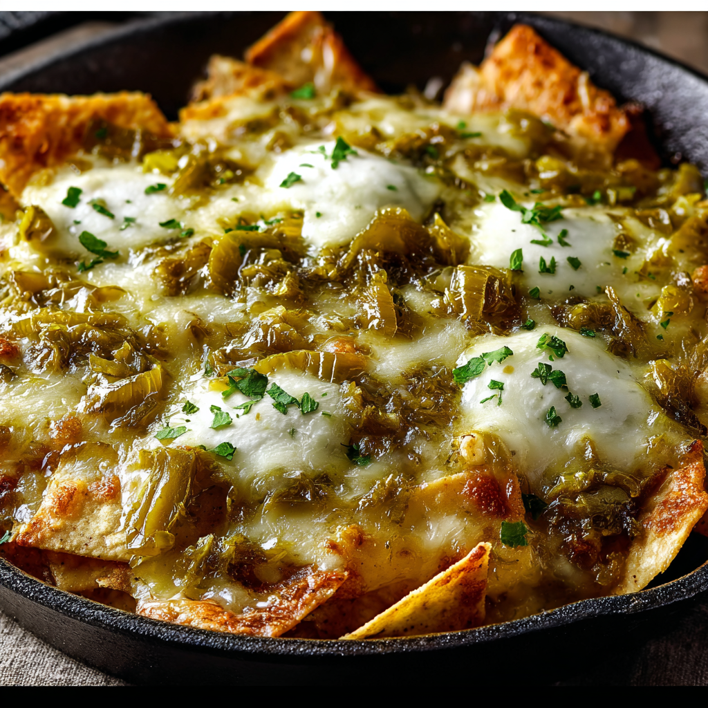 Les chilaquiles sont l’un des plats les plus emblématiques de la cuisine mexicaine traditionnelle. À la fois simples et incroyablement savoureux, ils transforment de modestes tortillas en un repas chaleureux, riche en texture et en caractère. Dans cette version “Green Chile & Extra Cheese Chilaquiles”, les chips de tortilla croustillantes sont généreusement nappées d’une sauce au piment vert parfumée, puis recouvertes d’une abondance de fromage fondant qui gratine à la perfection.