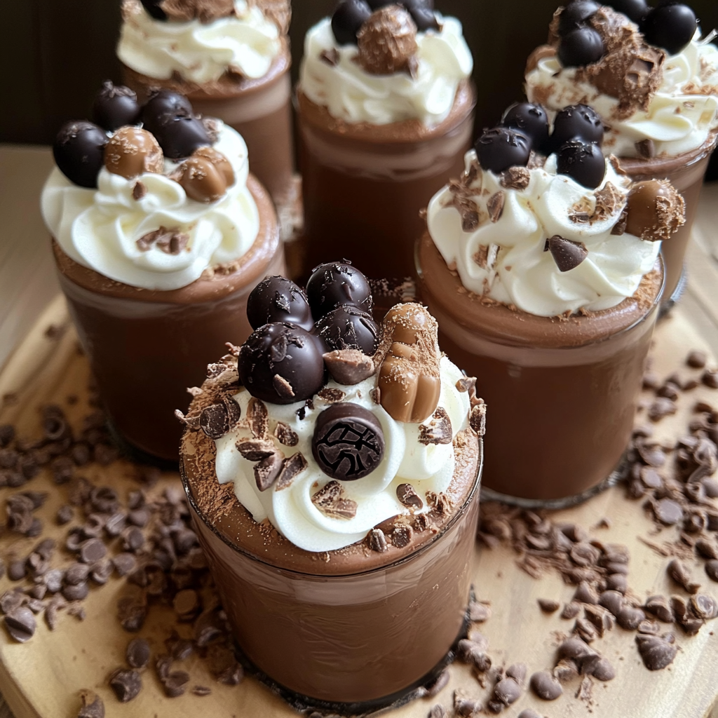 Saupoudrer de cacao : Pour une finition parfaite, saupoudrez légèrement chaque dessert de cacao en poudre non sucré. Cela ajoutera une touche visuelle et une profondeur de goût.