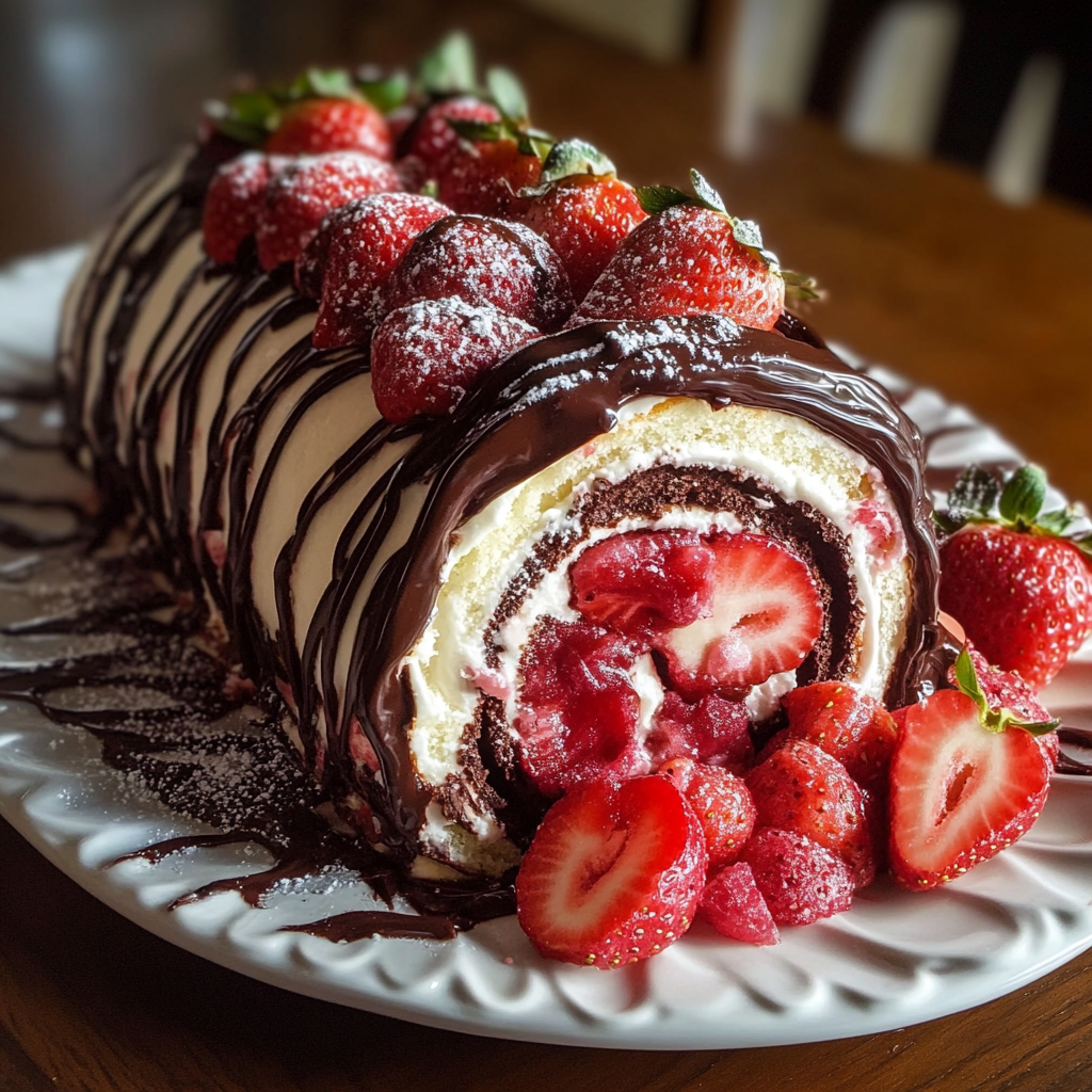 If you’re looking for a dessert that’s as stunning as it is delicious, this Chocolate Covered Strawberry Roll Cake is the perfect choice. Imagine a light and fluffy chocolate cake, rolled up with a creamy cheesecake filling, and topped with a luscious strawberry topping—it’s a showstopper for any occasion! Let’s dive into the recipe so you can create this delightful dessert at home.