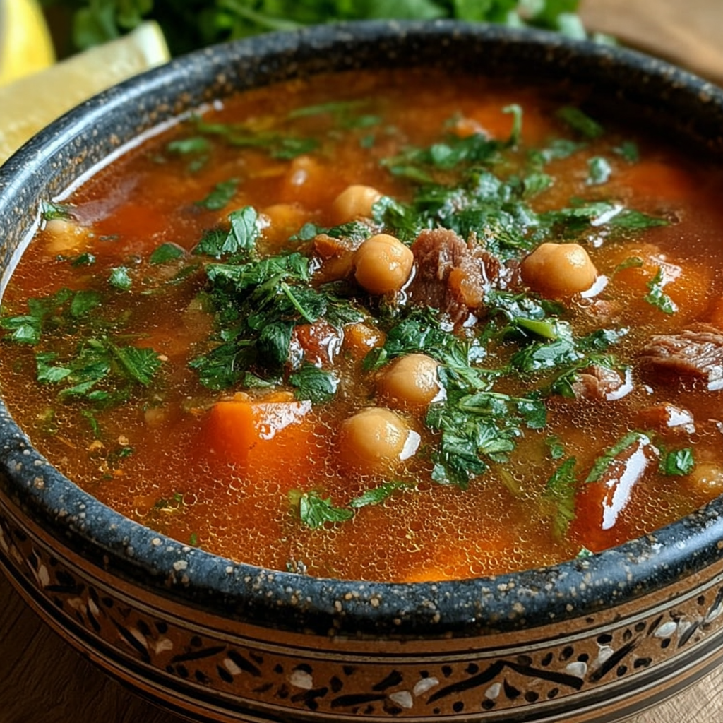 Son secret réside dans la cuisson lente du bœuf qui infuse la soupe de goût et de tendreté, et l’ajout d’épices qui apportent chaleur et profondeur à chaque cuillère. Les pois chiches apportent à la fois texture et consistance, rendant ce plat complet et équilibré.