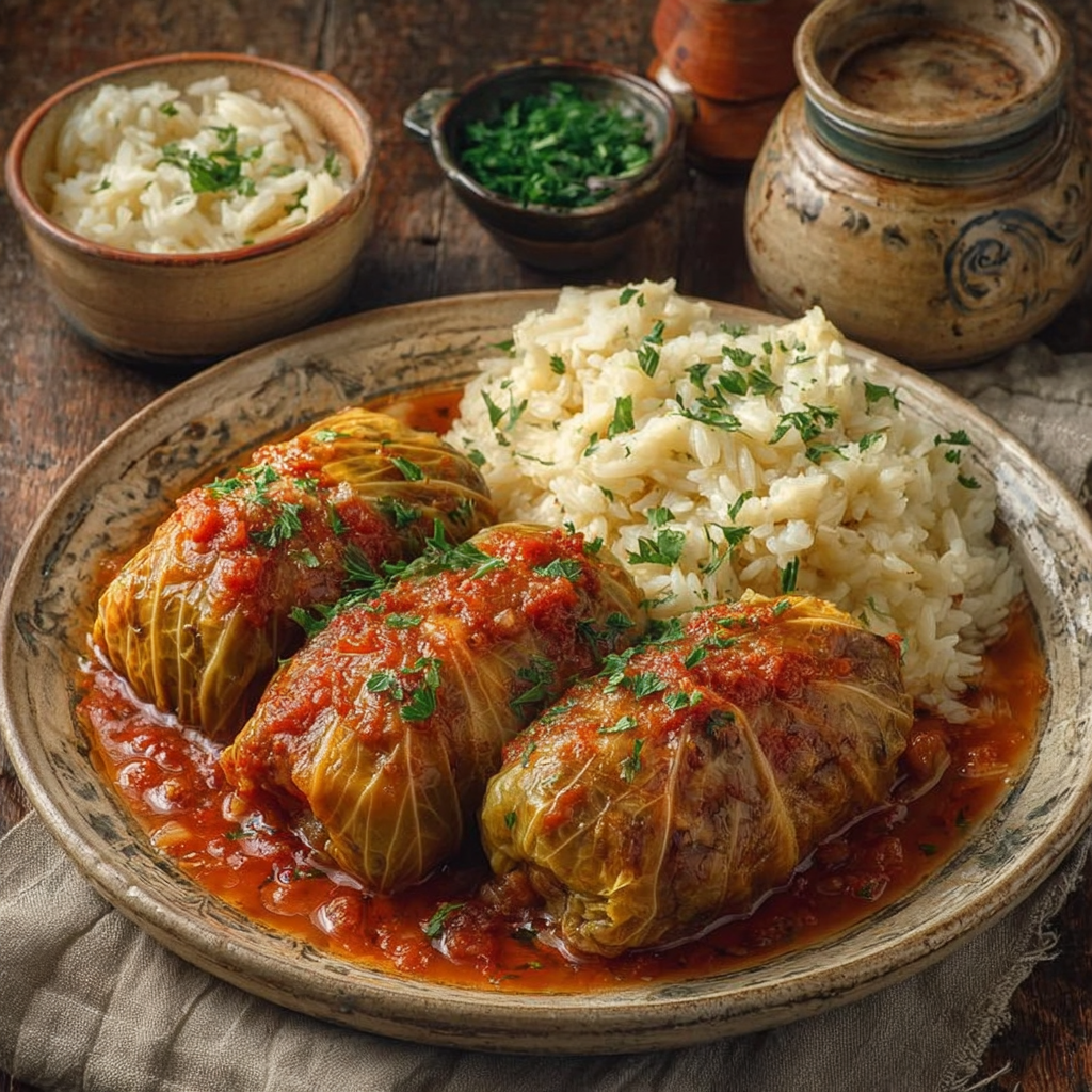 Ce plat rustique et gourmand est connu pour ses saveurs riches et sa texture fondante. Le chou devient tendre pendant la cuisson et absorbe les arômes de la farce et de la sauce tomate, ce qui donne un résultat particulièrement savoureux.