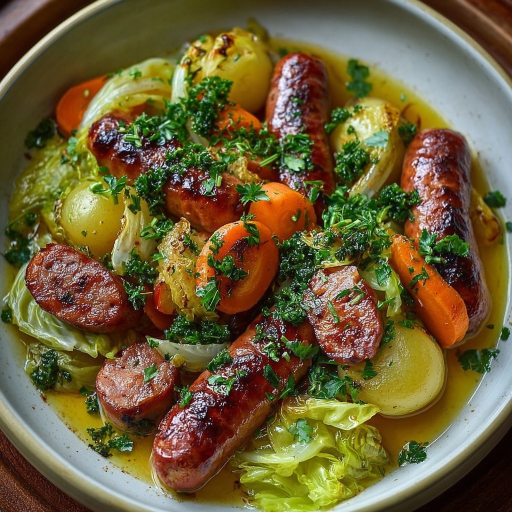 Ce plat apporte des glucides complexes issus du chou et des carottes, des protéines de qualité provenant des saucisses et des lipides provenant du beurre et de l’huile. Il constitue un repas complet et rassasiant, adapté aux saisons froides ou aux repas familiaux.