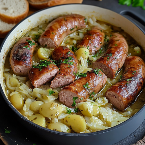 Le chou vert braisé aux saucisses est un plat réconfortant qui célèbre la cuisine maison dans toute sa simplicité. En associant des ingrédients classiques à une préparation mijotée, cette recette incarne le véritable esprit des repas chaleureux et généreux. Essayez-la et découvrez un véritable régal qui deviendra sans doute un incontournable de vos repas d’hiver !