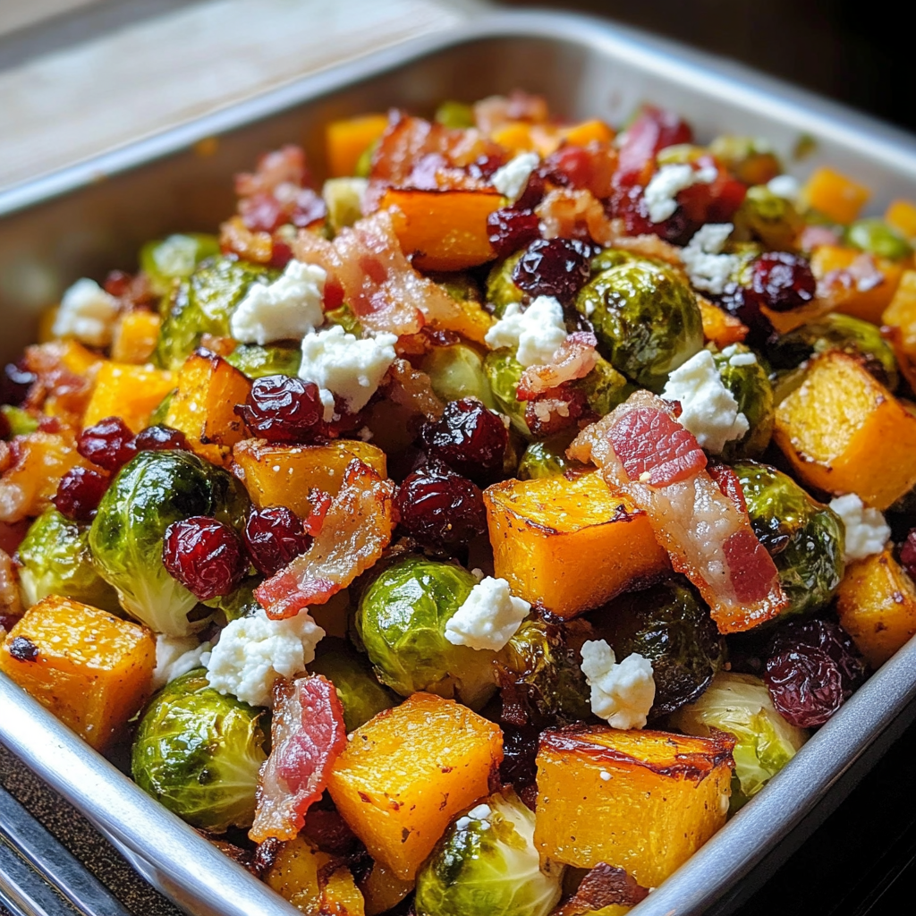 La recette de Choux de Bruxelles et Courge Butternut Rôtis avec Bacon, Canneberges et Feta est bien plus qu’un simple plat d’accompagnement ; c’est un véritable festin de saveurs qui apportera une touche réconfortante à vos repas d’automne. Avec des ingrédients frais, sains et faciles à préparer, elle se prête aussi bien à un dîner familial qu’à un repas festif entre amis. N’hésitez pas à personnaliser cette recette selon vos goûts et à expérimenter avec d’autres ingrédients pour la rendre encore plus unique.
