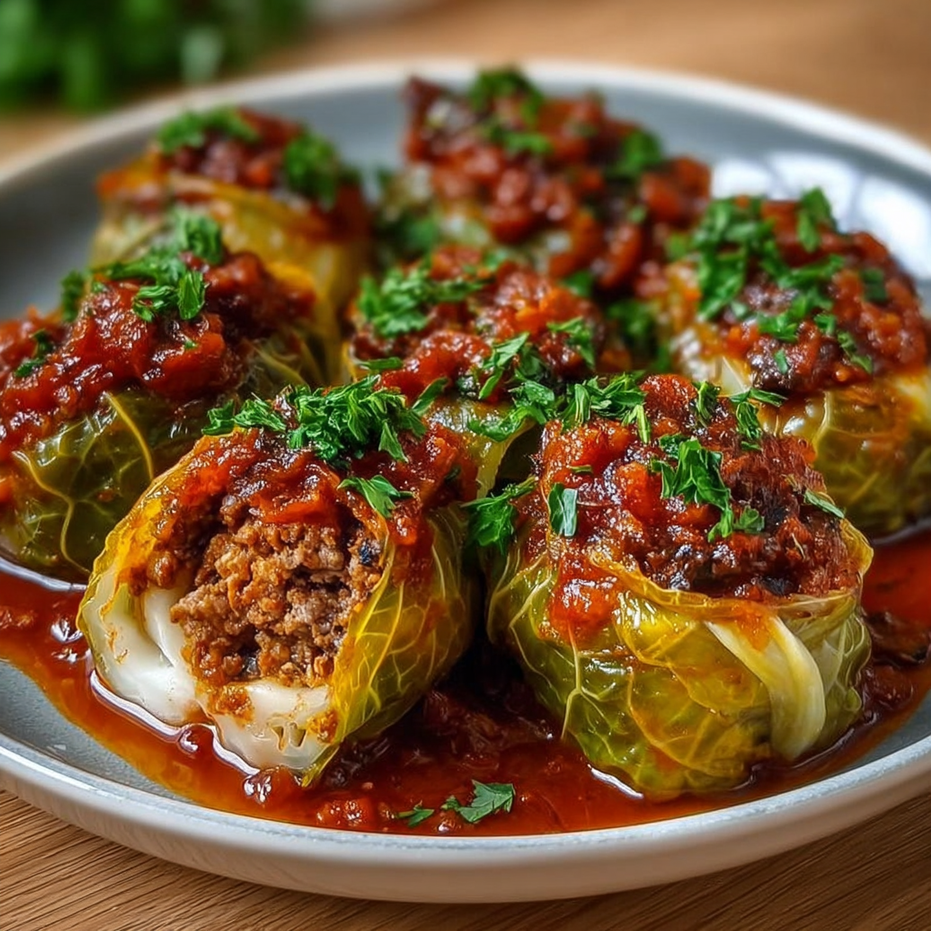 Les choux farcis font partie des grands classiques de la cuisine familiale. Présents dans de nombreuses traditions culinaires à travers le monde, ils incarnent parfaitement l’esprit de la cuisine mijotée, généreuse et réconfortante. Dans cette version à la viande hachée et à la sauce tomate, chaque feuille de chou renferme une farce savoureuse, moelleuse et parfumée, délicatement nappée d’une sauce douce et légèrement acidulée.