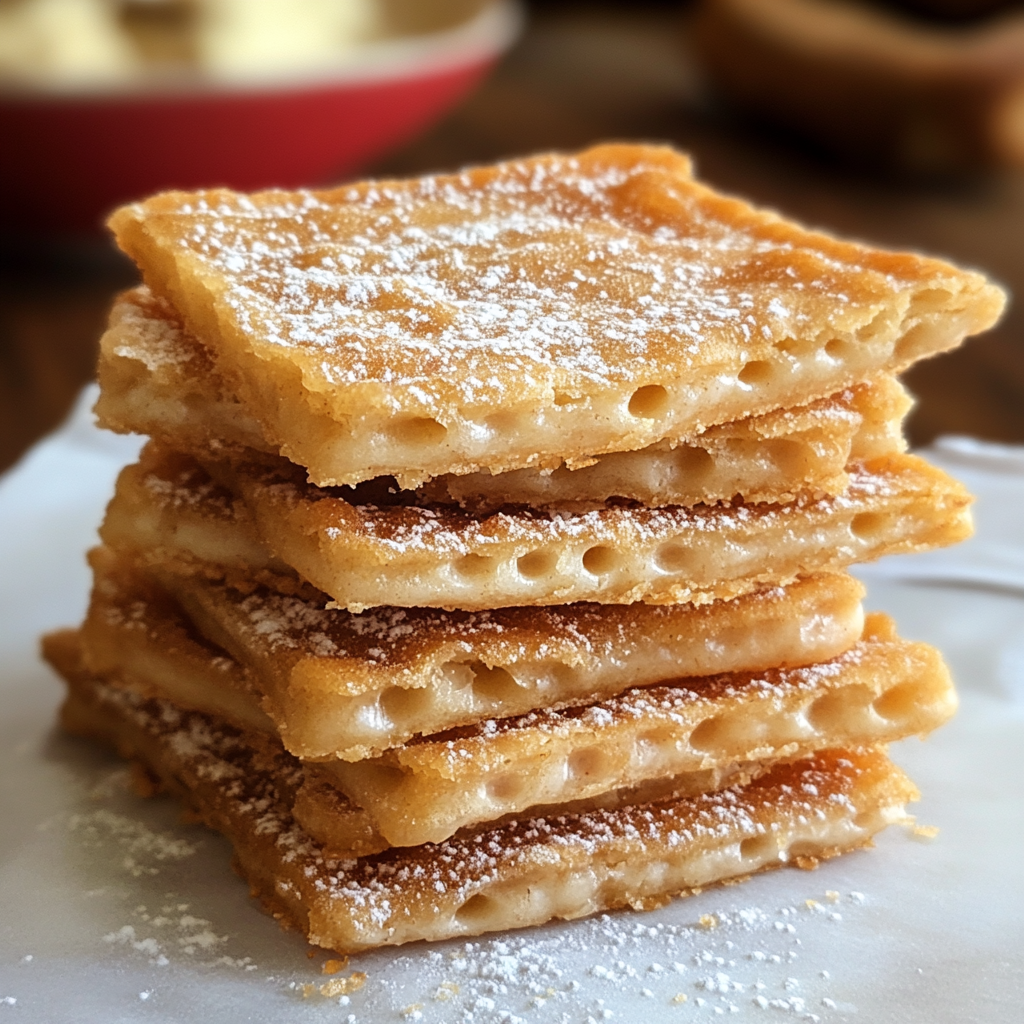 Pour une véritable touche de churro, vous pouvez saupoudrer un mélange de sucre et de cannelle sur les crackers une fois qu’ils ont refroidi légèrement mais sont encore collants. Cela ajoutera une saveur supplémentaire qui rappellera les churros traditionnels.