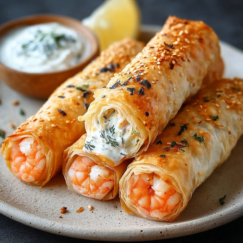Des feuilles de brick dorées et croustillantes, garnies d’une farce onctueuse aux crevettes parfumées à l’ail et aux herbes. Un équilibre parfait entre le croquant de l’extérieur et la tendresse du cœur.