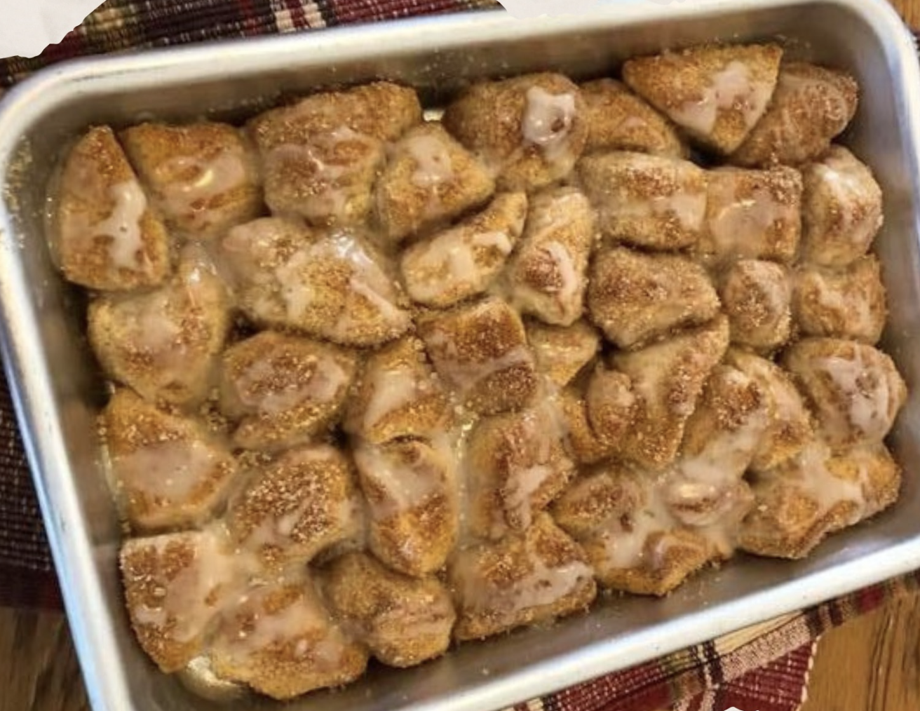 - Dip each biscuit ball into the melted butter and sugar mixture.