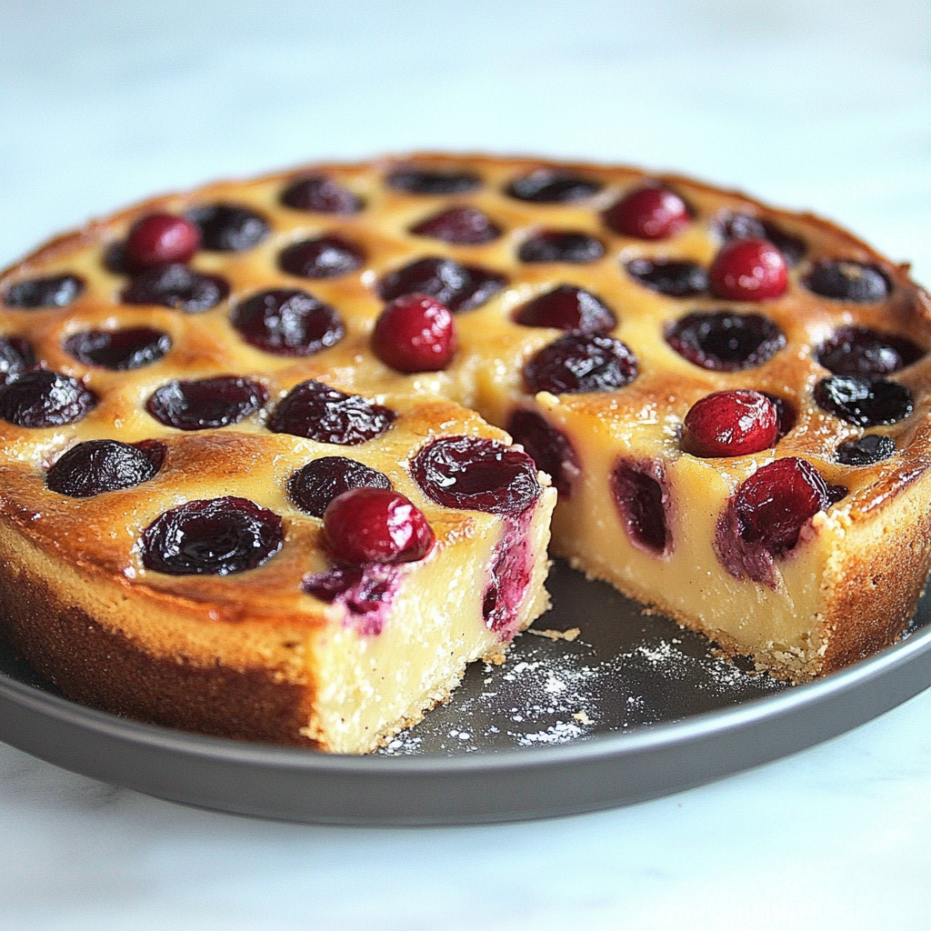 Enfournez pour 35 à 40 minutes, jusqu’à ce que le clafoutis soit doré et légèrement gonflé.