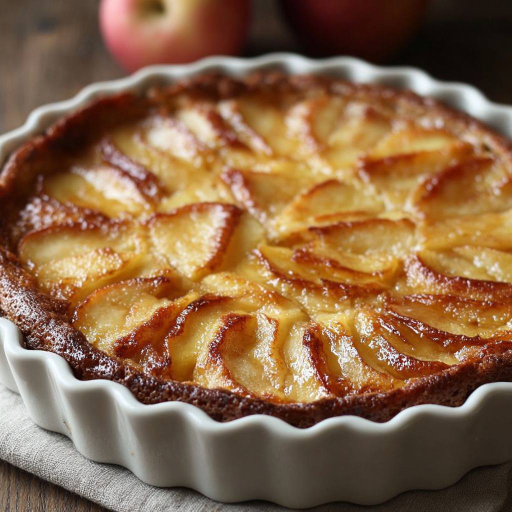Cette recette peut être servie tiède ou à température ambiante. Servi tiède, le clafoutis offre un contraste agréable entre la douceur des pommes caramélisées et la légèreté de la pâte. À température ambiante, il devient un dessert plus ferme mais toujours moelleux, idéal pour être découpé en portions individuelles lors d’un goûter ou d’un buffet. Une légère saupoudrée de sucre glace sur le dessus peut être ajoutée pour la présentation et pour accentuer l’aspect gourmand du dessert.
