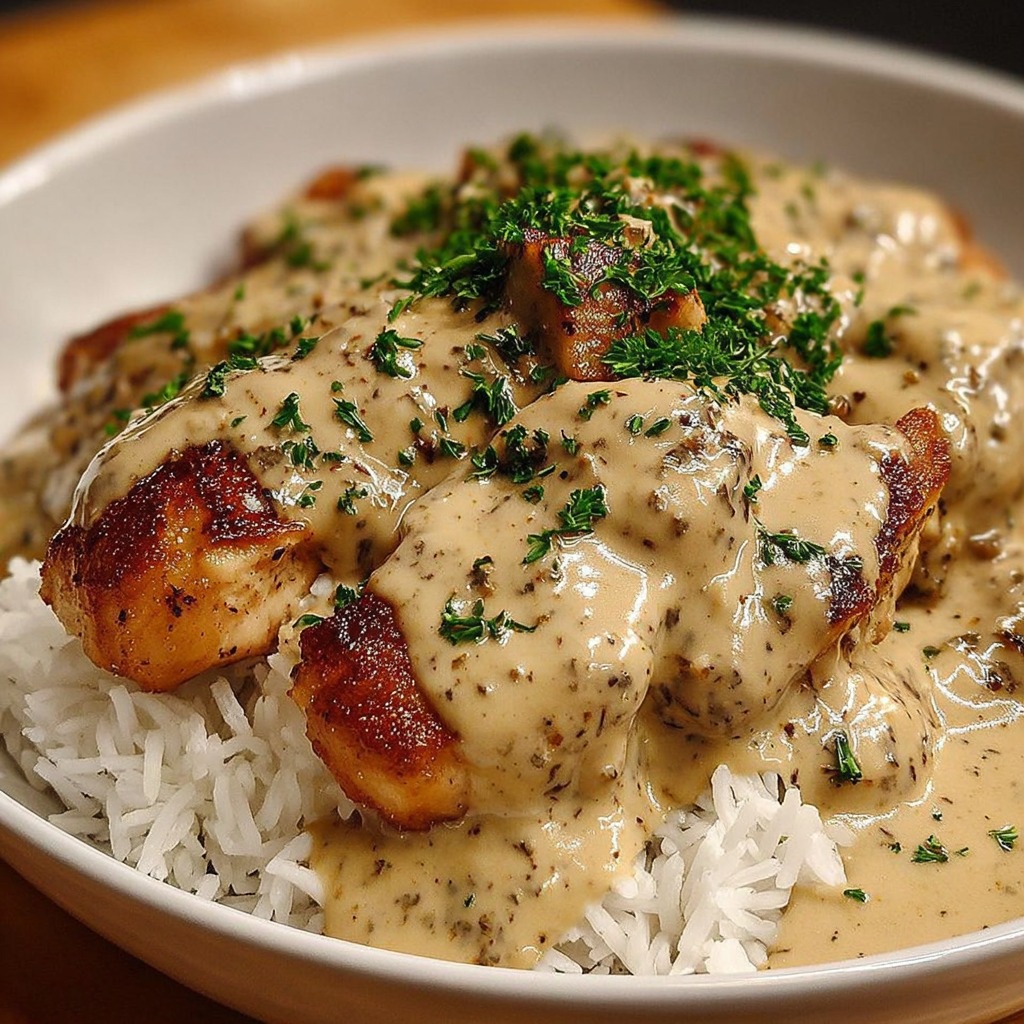 En conclusion, le poulet crémeux et riz couvert de sauce est un plat simple, savoureux et familial. Sa texture veloutée et sa richesse aromatique en font un classique réconfortant, facile à préparer et adaptable selon les goûts et les ingrédients disponibles. Chaque bouchée combine douceur, onctuosité et saveur, offrant une expérie