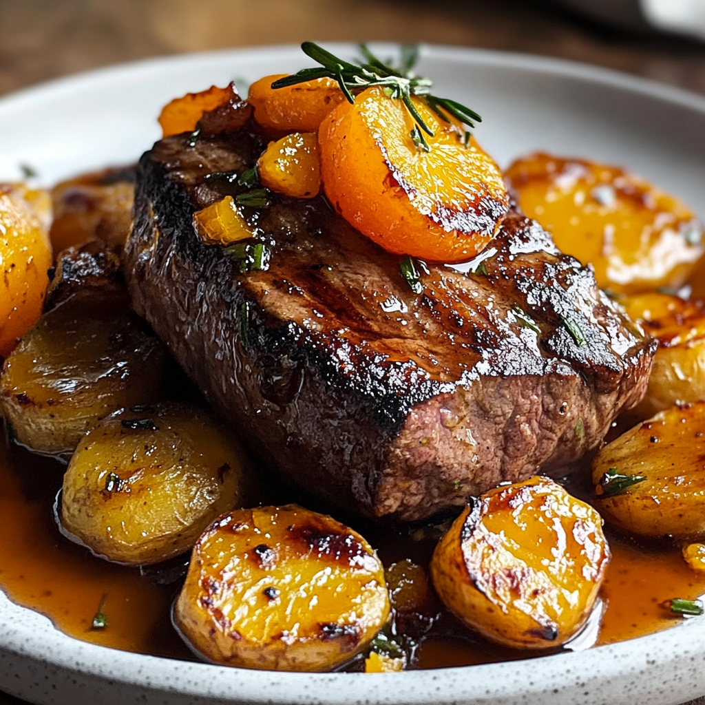 - Transférez au Four : Une fois doré, transférez le filet mignon au four avec les patates douces pour 15 minutes supplémentaires.