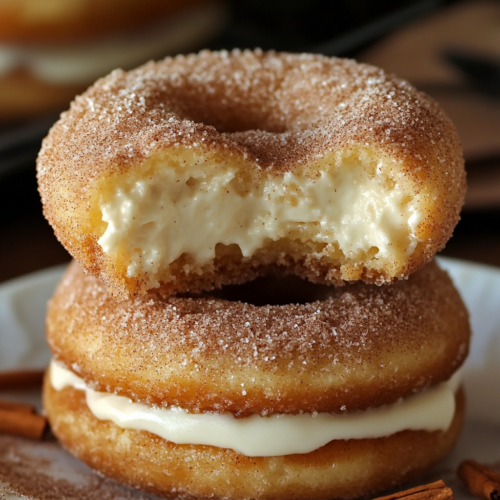 Savourez des cookies doux et fondants, enrobés de sucre à la cannelle et fourrés à la crème au fromage pour un goût inoubliable. Ces cookies à la fois moelleux et gourmands sont parfaits pour un goûter ou un dessert. En plus de leur texture parfaite, l’enrobage sucré à la cannelle ajoute un croquant délicieux qui contraste magnifiquement avec la douceur du fromage à la crème. Si vous aimez les douceurs fondantes, ces cookies donut sont faits pour vous !